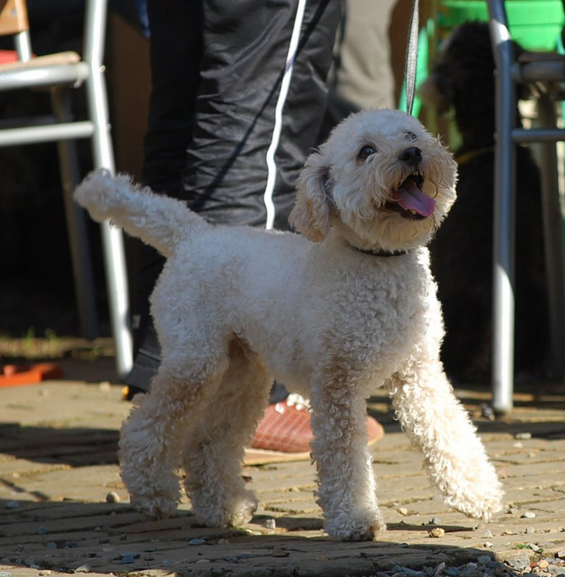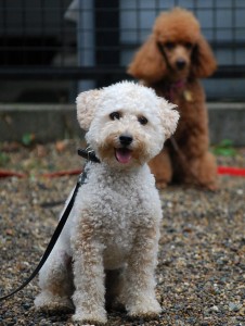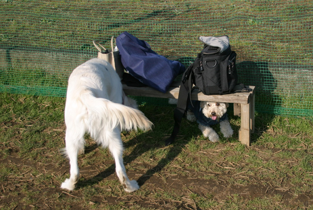 9かげつのしろいレトリバーのショウちゃんにおされぎみのボク。