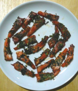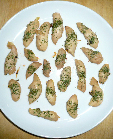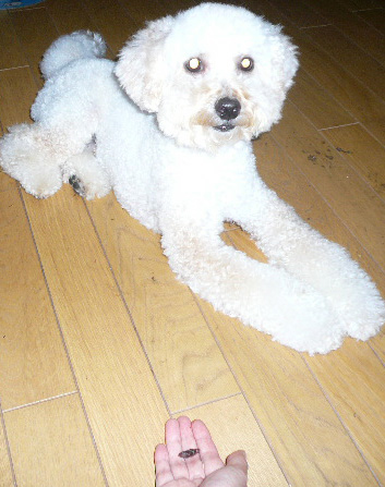 出来立てを味見してみました。味付けをすれば、人間用の酒の肴として充分いけます。 簡単ですので、チェスくんも是非!トレーニングの成果も期待できるはず。(^^)