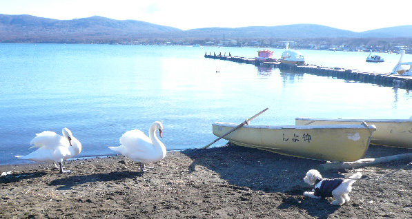 みずうみのほとりには、おこりんぼなはくちょうがいた。はくちょうとにらめっこしたボク。