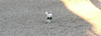 チェックインのあと、ホテルのドッグランでウォーミングアップ。まっくろになった。